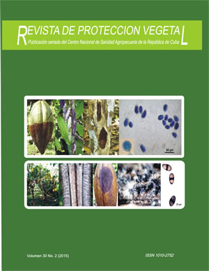 Durante una encuesta fitopatológica, se visitaron 20 fincas cacaoteras en la región oriental de Cuba, cuatro en la provincia Granma y 16 en Baracoa, donde se muestrearon mazorcas y hojas enfermas, chancros del tronco, agallas y otras manifestaciones de enfermedad. Las muestras se desinfectaron (NaOCl, 3%), se lavaron con agua destilada estéril, montadas en cámaras húmedas y/o sembradas en agar agua + vancomicina (200 ug/ml) o medio selectivo para Phytophthora spp. Los hongos que con mayor frecuencia se encontraron fueron Lasiodiplodia theobromae Griffiths & Maubl. (90%), Phytophthora palmivora (E.J. Butler) (85%) y Colletotrichum gloeosporioides (Penz.) Sacc. (70%). No se hallaron aislamientos típicos de P. tropicalis. Las enfermedades de mayor incidencia fueron las pudriciones de la mazorca por P. palmivora (65%), por L. theobromae (55%) y antracnosis por C. gloeosporioides (55%). Se detectaron, además, mancha foliar por Cercospora sp. (20%) y por Phomopsis sp. (10%), chancros del tallo por P. palmivora (15%), muerte regresiva por L. theobromae (10%) y agallas causadas por Fusarium decemcellulare (10%). Este último hongo se asoció, en Baracoa, a agallas tipo abanico similares a pequeñas escobas de bruja. Se descartó la presencia de Moniliophthora perniciosa en Cuba asociada a esta sintomatología.